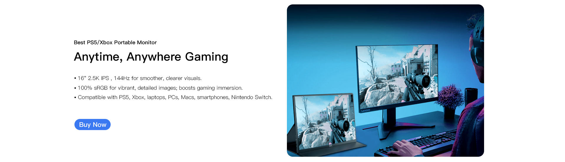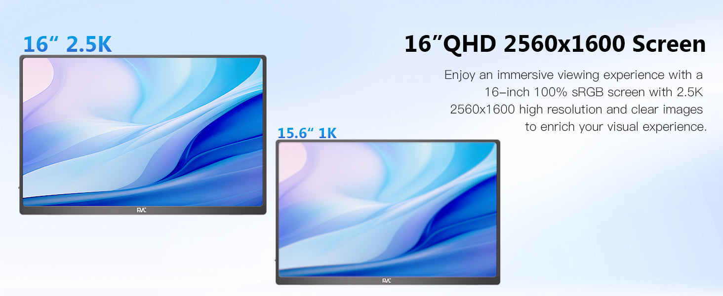 16" 2.5K Portable Monitor for Laptop 144hz QHD Flicker-Free Small Monitor USB-C, HDMI Portable Screen for Laptop Compatible with Windows, MacBook, Phone, Switch, Xbox & PS4/5 Portable Gaming Monitor